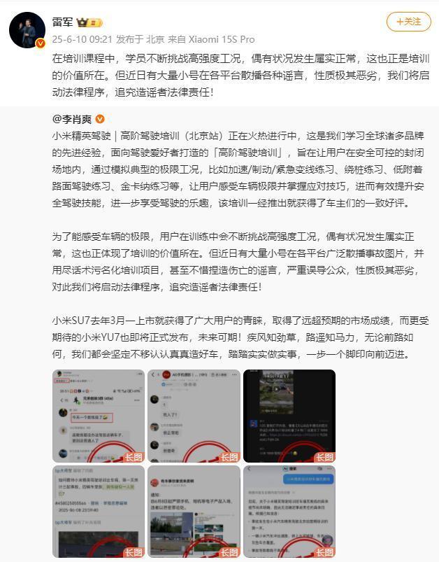 南方网、粤学习记者 卢绍聪。但近日有大量小号在各平台散播各种谣言,性质极其恶劣,我们将启动法律程序,追究造谣者法律责任!同日较早时间,小米汽车副总裁@李肖爽 发文称豪门国际平台,近日有大量小号在各平台广泛散播事故图片豪门国际平台,并用尽话术污名化培训项目豪门国际平台,甚至不惜捏造伤亡的谣言,严重误导公众,性质极其恶劣,对此将启动法律程序,追究造谣者法律责任。该培训项目使用小米SU7 Max作为核心教学车辆,由拥有10年以上培训经验的教练团队执教,旨在让用户在安全可控的封闭场地内,通过模拟典型极限工况,感受车辆极限并掌握应对技巧,提升安全驾驶技能。